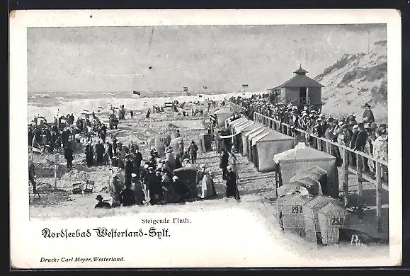 AK Westerland, Urlauber beobachten am Strand die steigende Flut