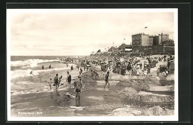 AK Westerland a. Sylt, Teilansicht mit Menschen a. Strand