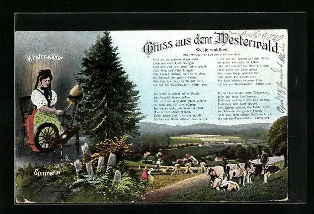 AK Westerwälder Spinnerin am Spinnrad mit Westerwaldlied