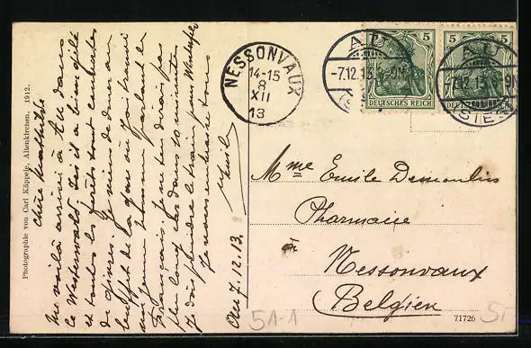 alte Ansichtskarte, gelaufen 1913, Stempelspur, guter Zustand