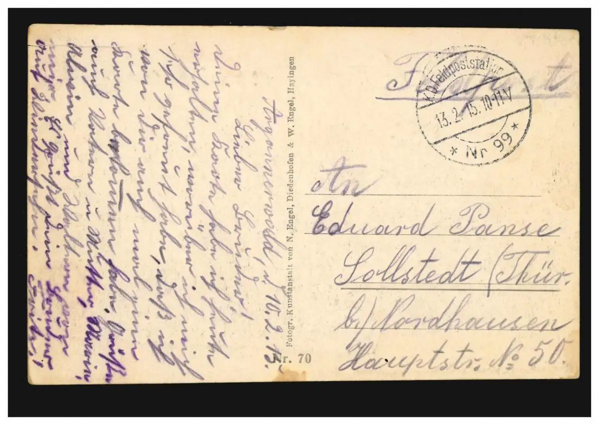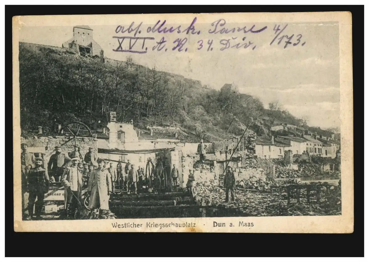 AK Westlicher Kriegsschauplatz: Dun / Maas, Feldpost 99 - 13.2.1915