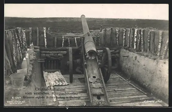 AK Westlicher Kriegsschauplatz, Verlassene englische Artillerie-Stellung in Maubeuge