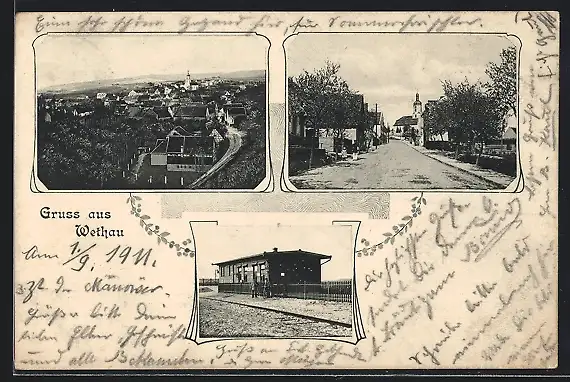 AK Wethau, Teilansicht, Bahnhof, Strassenpartie