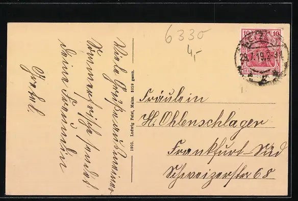 alte Ansichtskarte, gelaufen 1919, guter Zustand