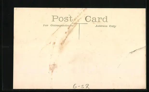 Personenbezogene Daten auf der Rückseite der Karte wurden durch blauen Textmarker unkenntlich gemacht. Die blauen Stellen sind auf die Vorderseite durchgeweicht und wirken sich negativ auf das Postkartenfoto aus