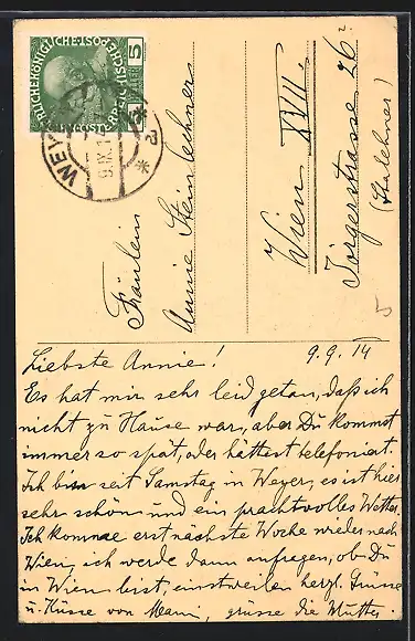 alte Ansichtskarte, gelaufen 1914, guter Zustand