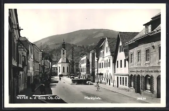 AK Weyer a. d. Enns, Marktplatz mit Kirche
