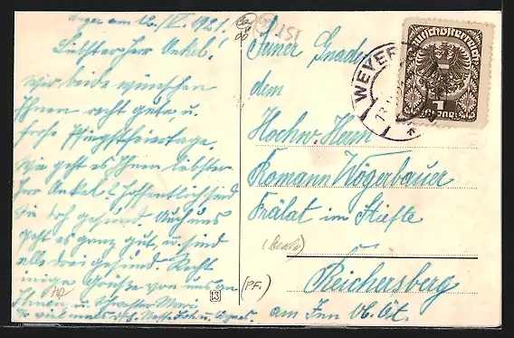 alte Ansichtskarte, gelaufen 1921, guter Zustand