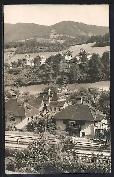 AK Weyer a. d. Enns, Ortsansicht mit Bahngleisen