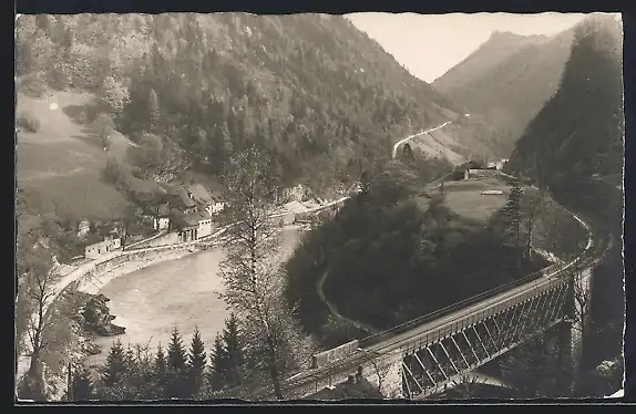 AK Weyer a. d. Enns, Ortsansicht mit einer Eisenbahnbrücke