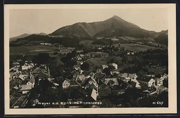 AK Weyer a. d. Enns, Teilansicht mit Rapoldegg aus der Vogelschau