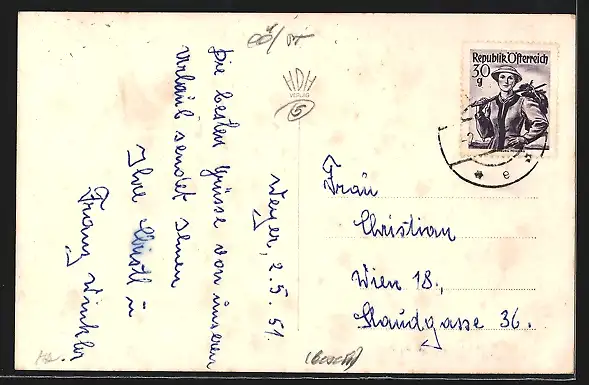 alte Ansichtskarte, gelaufen 1951, guter Zustand