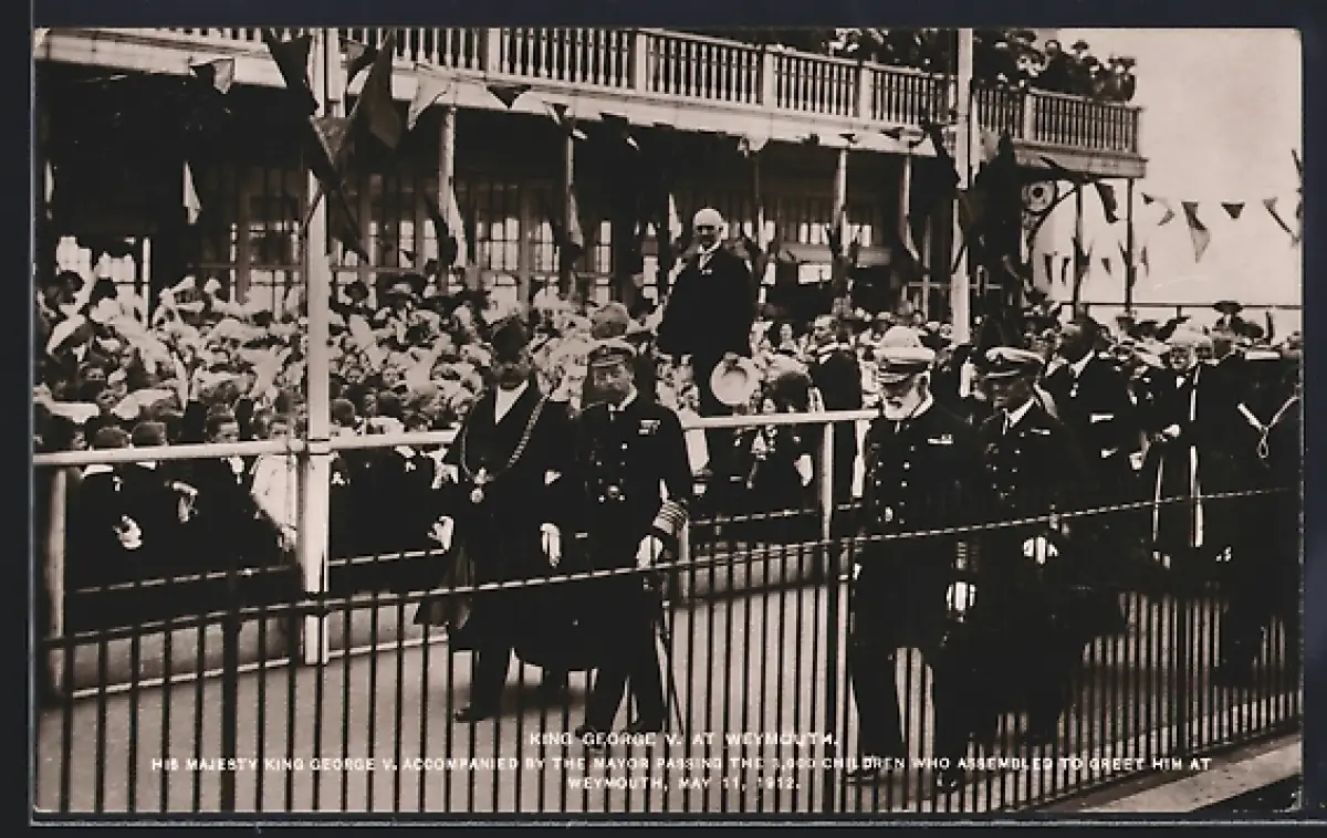 AK Weymouth, King George V. Accompanied by the Mayor Passing Children at Greeting Parade