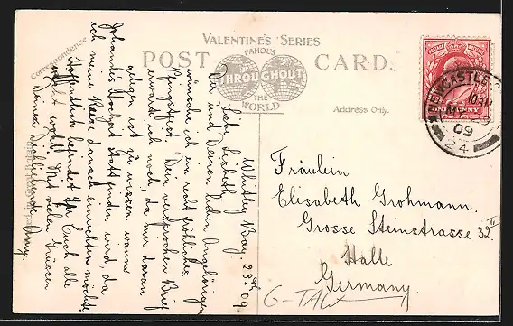 alte Ansichtskarte, gelaufen 1909, Ecken bestoßen, guter Zustand