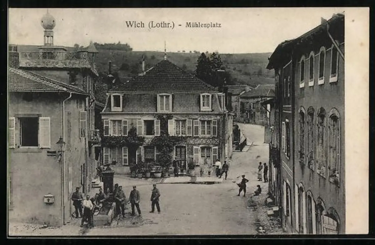 AK Wich, Mühlenplatz mit dt. Soldaten