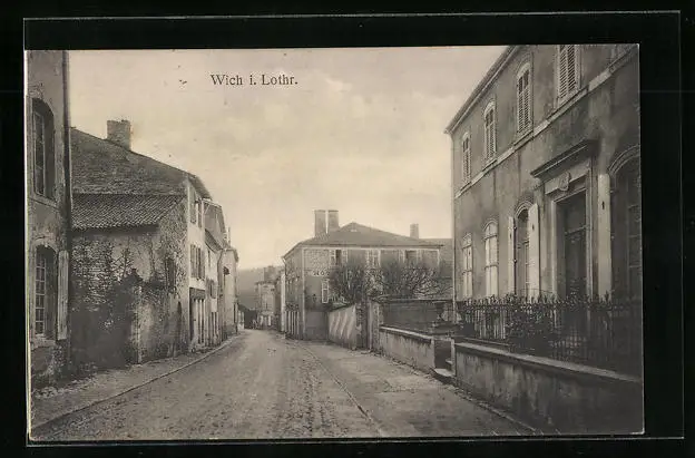 AK Wich i. Lothr., Strassenpartie mit Gebäudeansicht