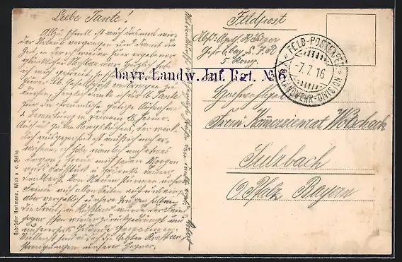 alte Ansichtskarte, gelaufen 1916 als Feldpost, guter Zustand