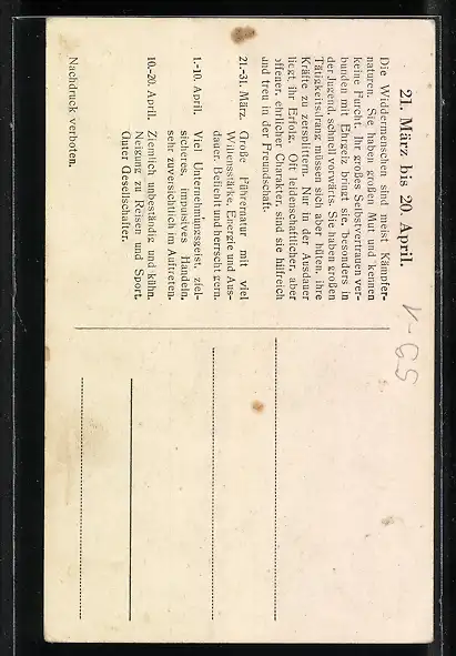 AK Widder unter dem Sternenhimmel, Sternzeichen Widder