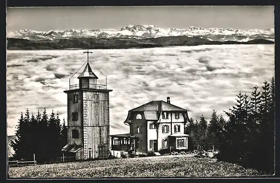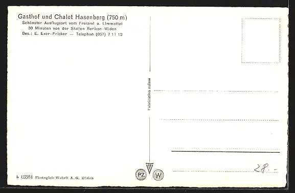 AK Widen, Hasenberg, Gasthof und Chalet Hasenberg E. Exer-Fricker mit Bergpanorama