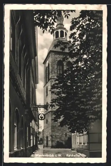 AK Wiedenbrück i. W., Partie am Ratskeller, Teilansicht