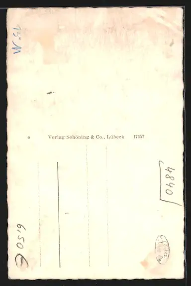 alte Ansichtskarte, ungelaufen, rückseitig Klebe- und Papierreste, guter Zustand