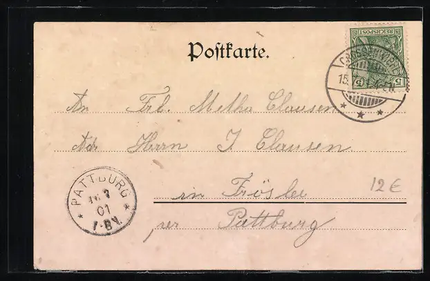 alte Ansichtskarte, gelaufen 1901, guter Zustand