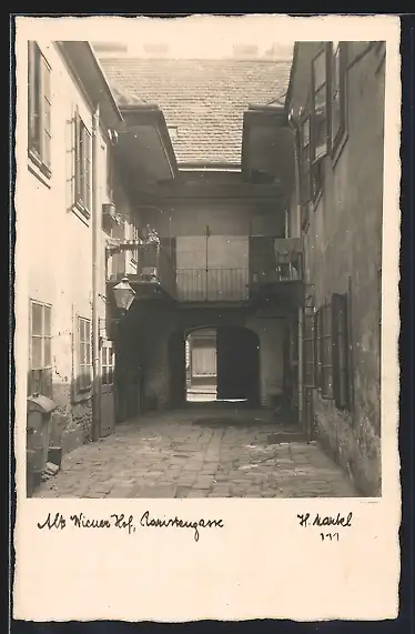 AK Wien, Alt-Wiener Hof in der Piaristengasse, mit Blick durch das Tor zur Strasse