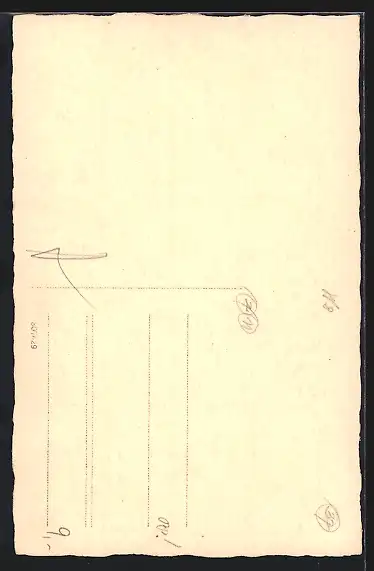 Personenbezogene Daten auf der Rückseite der Karte wurden durch blauen Textmarker unkenntlich gemacht. Die blauen Stellen sind auf die Vorderseite durchgeweicht und wirken sich negativ auf das Postkartenfoto aus