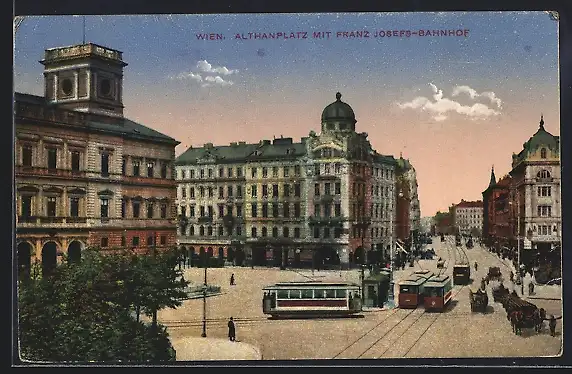 AK Wien, Althanplatz mit Franz Josefs-Bahnhof und Strassenbahn