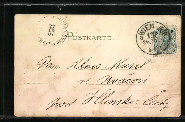 gelaufen 1901, Eckknick links oben und unten, guter Zustand