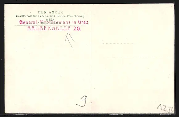 Personenbezogene Daten auf der Rückseite der Karte wurden durch blauen Textmarker unkenntlich gemacht. Die blauen Stellen sind auf die Vorderseite durchgeweicht und wirken sich negativ auf das Postkartenfoto aus