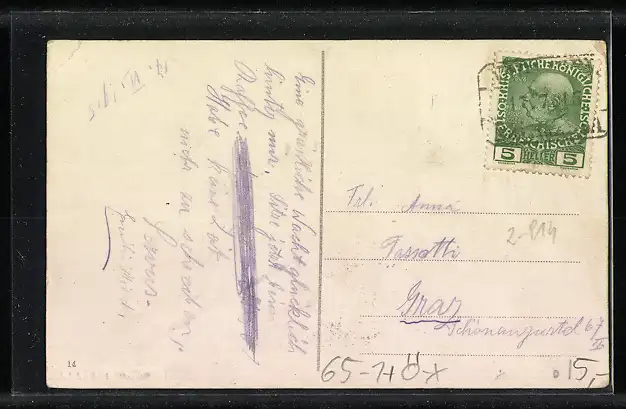 alte Ansichtskarte, gelaufen 1915, Eckknick re. oben, Bugspur li. oben, guter Zustand