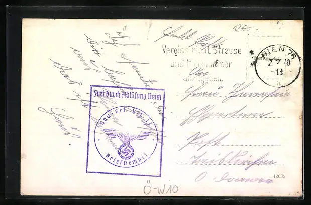 alte Ansichtskarte, gelaufen 1940 als Feldpost, guter Zustand