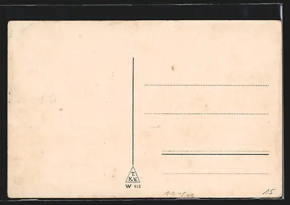 Personenbezogene Daten auf der Rückseite der Karte wurden durch blauen Textmarker unkenntlich gemacht. Die blauen Stellen sind auf die Vorderseite durchgeweicht und wirken sich negativ auf das Postkartenfoto aus