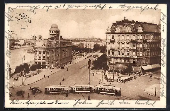 AK Wien, Aspernplatz mit Urania und Strassenbahn