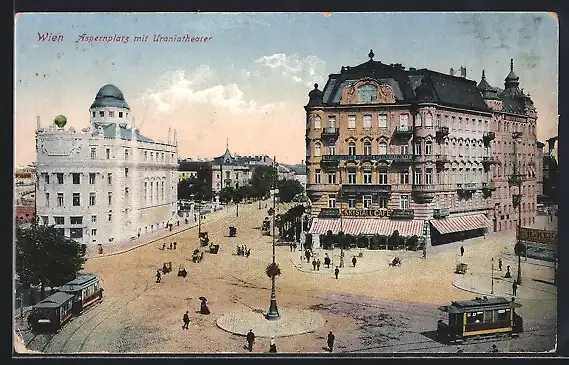 AK Wien, Aspernplatz mit Uraniatheater, Strassenbahn