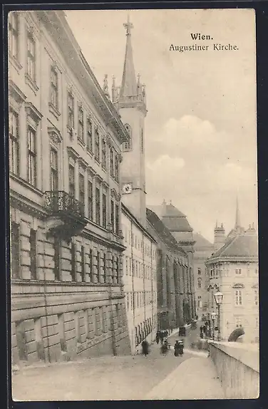 AK Wien, Augustiner Kirche mit Strassenansicht