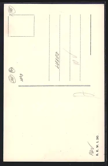 Personenbezogene Daten auf der Rückseite der Karte wurden durch blauen Textmarker unkenntlich gemacht. Die blauen Stellen sind auf die Vorderseite durchgeweicht und wirken sich negativ auf das Postkartenfoto aus