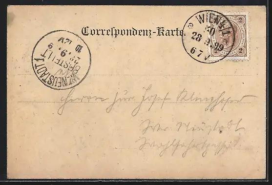 alte Ansichtskarte, gelaufen 1899, guter Zustand