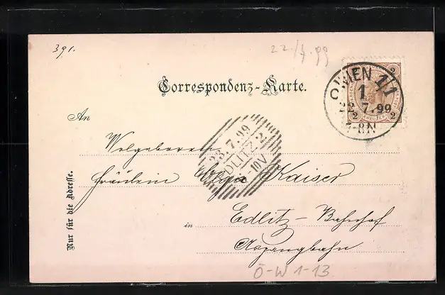 alte Ansichtskarte, gelaufen 1899, guter Zustand