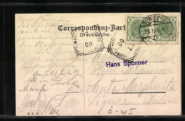 alte Ansichtskarte, gelaufen 1908, Stempelspur, guter Zustand