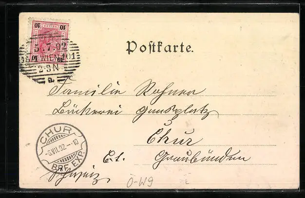 Personenbezogene Daten auf der Rückseite der Karte wurden durch blauen Textmarker unkenntlich gemacht. Die blauen Stellen sind auf die Vorderseite durchgeweicht und wirken sich negativ auf das Postkartenfoto aus