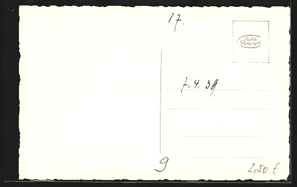 Personenbezogene Daten auf der Rückseite der Karte wurden durch blauen Textmarker unkenntlich gemacht. Die blauen Stellen sind auf die Vorderseite durchgeweicht und wirken sich negativ auf das Postkartenfoto aus
