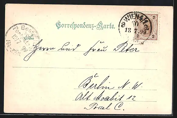 alte Ansichtskarte, gelaufen 1899, Eckknick li. oben, Stempelspur, guter Zustand
