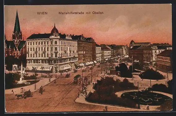 AK Wien, Café Westend an der Mariahilferstrasse mit Obelisk