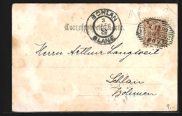 alte Ansichtskarte, gelaufen 1899, Eckknick li. oben, Stempelspur, guter Zustand