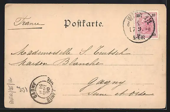 alte Ansichtskarte, gelaufen 1900, leichte Bugspur re. oben, guter Zustand