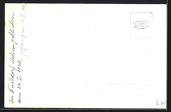 Personenbezogene Daten auf der Rückseite der Karte wurden durch blauen Textmarker unkenntlich gemacht. Die blauen Stellen sind auf die Vorderseite durchgeweicht und wirken sich negativ auf das Postkartenfoto aus