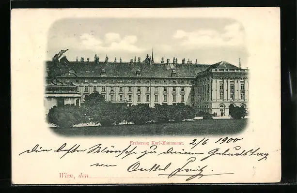 AK Wien, Erzherzog Karl-Monument von einem Rasen gesehen