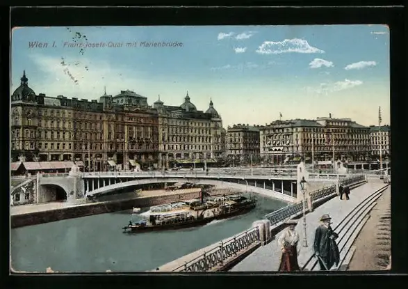 AK Wien, Franz-Josefs-Kai mit Marienbrücke